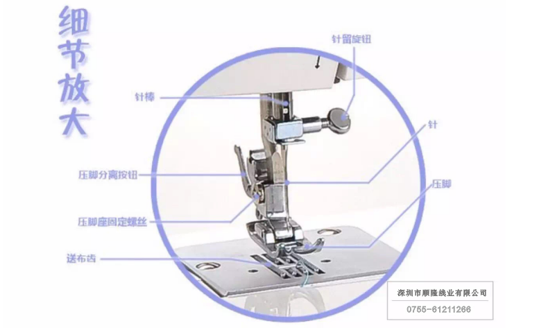 (三)檢查機針型号是否适用、針杆調節的高(gāo)度是否準确,以及檢查機針是否貼緊針杆頂部。機針安裝過高(gāo)或過低(dī),都會(huì)影(yǐng)響鈎子取線。