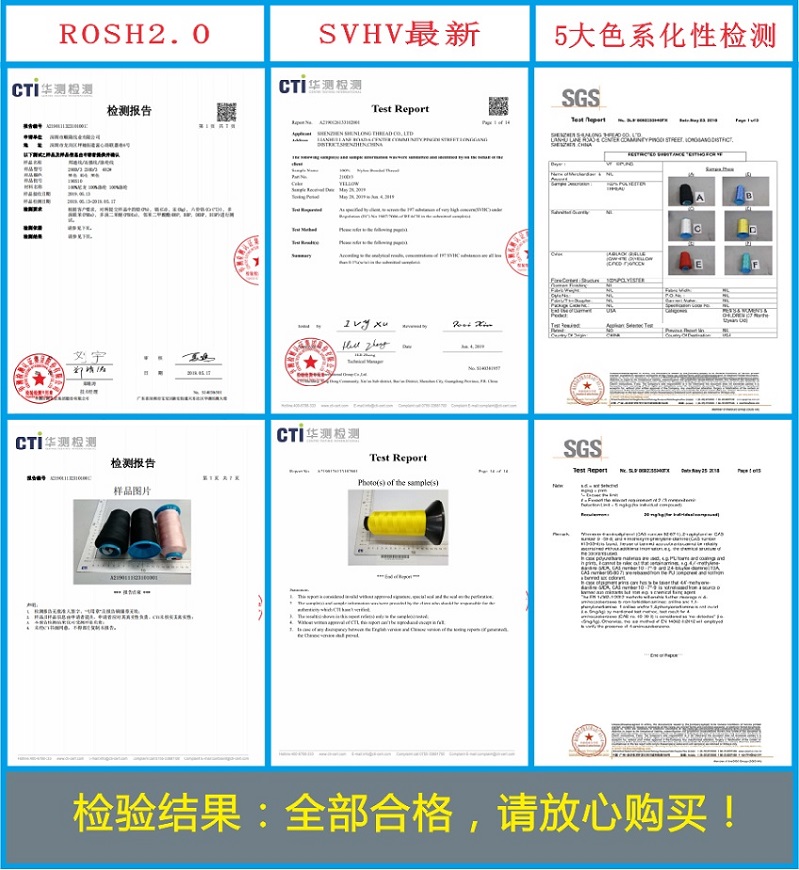 滌綸短(duǎn)纖縫紉線的優勢:順牌SP線,重視(shì)色準度及色牢度等縫紉線指标的檢測,産品質量層層把關;選用美國道(dào)康甯矽蠟潤滑線體(tǐ),上(shàng)油率要求達标3%左右,以保證車(chē)縫性能;自設染廠,最低(dī)量每款顔色12個(gè)起訂,最快樣品一天交貨。