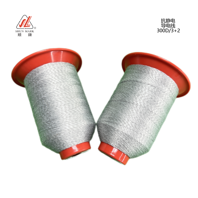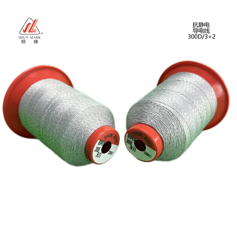 順牌抗靜電(diàn)線300D/3+2滌綸+不鏽鋼纖維絲合股導線縫紉線灰白色