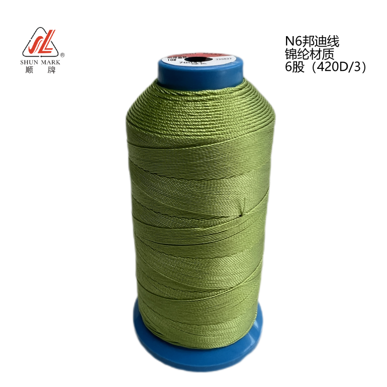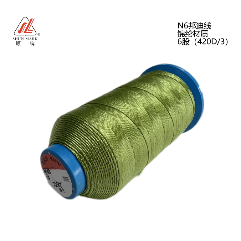【産品介紹】: 尼龍6邦迪線是一種采用錦綸(尼龍6)連續性長絲合股撚線、粘合定型、染色和(hé)上(shàng)油卷繞等工藝制(zhì)程的縫紉線。按照粘合方式的不同,分為(wèi)內(nèi)邦尼龍邦迪線和(hé)外邦尼龍迪線兩大(dà)類。