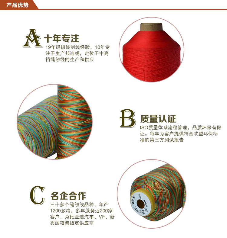 産品描述:拷邊線,尼龍彈力線__邦迪縫紉線|尼龍縫紉線|滌綸縫紉線|深圳順隆線業縫紉線制(zhì)線廠