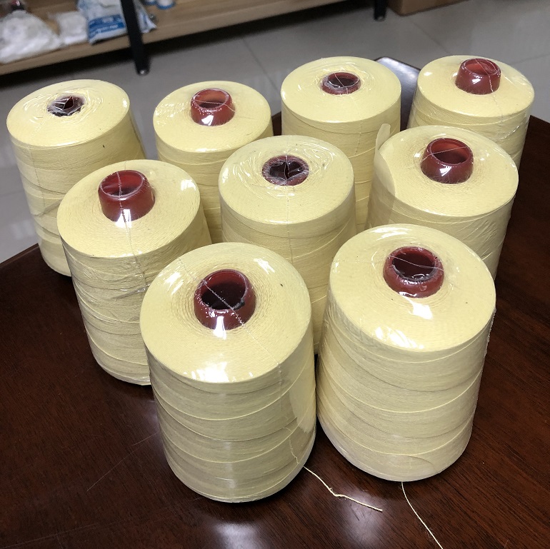 工藝:在聚酯纖維切片抽絲過程中,加入永久性阻燃材料,使縫紉線具備永久阻燃的功效。