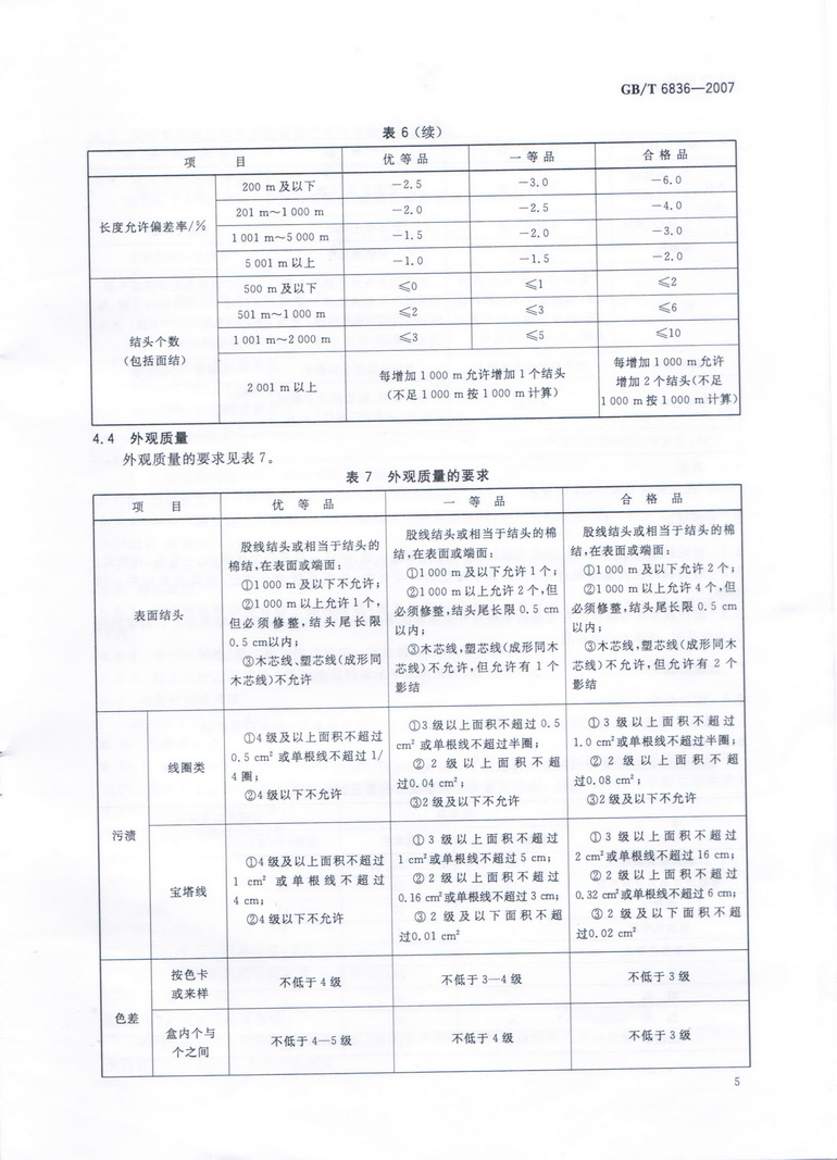 4.3 棉縫紉線、棉蠟光縫紉線的內(nèi)在質量